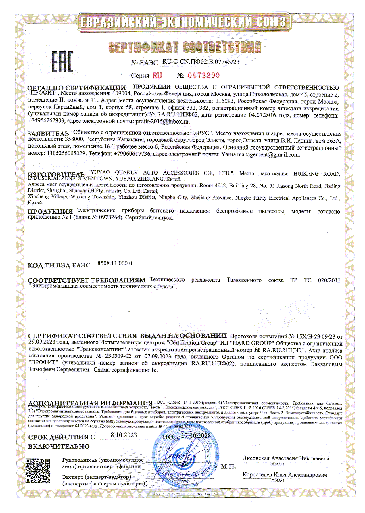 Более подробно ознакомиться с сертификатом соответствия, вы можете, скачав на свое устройство
